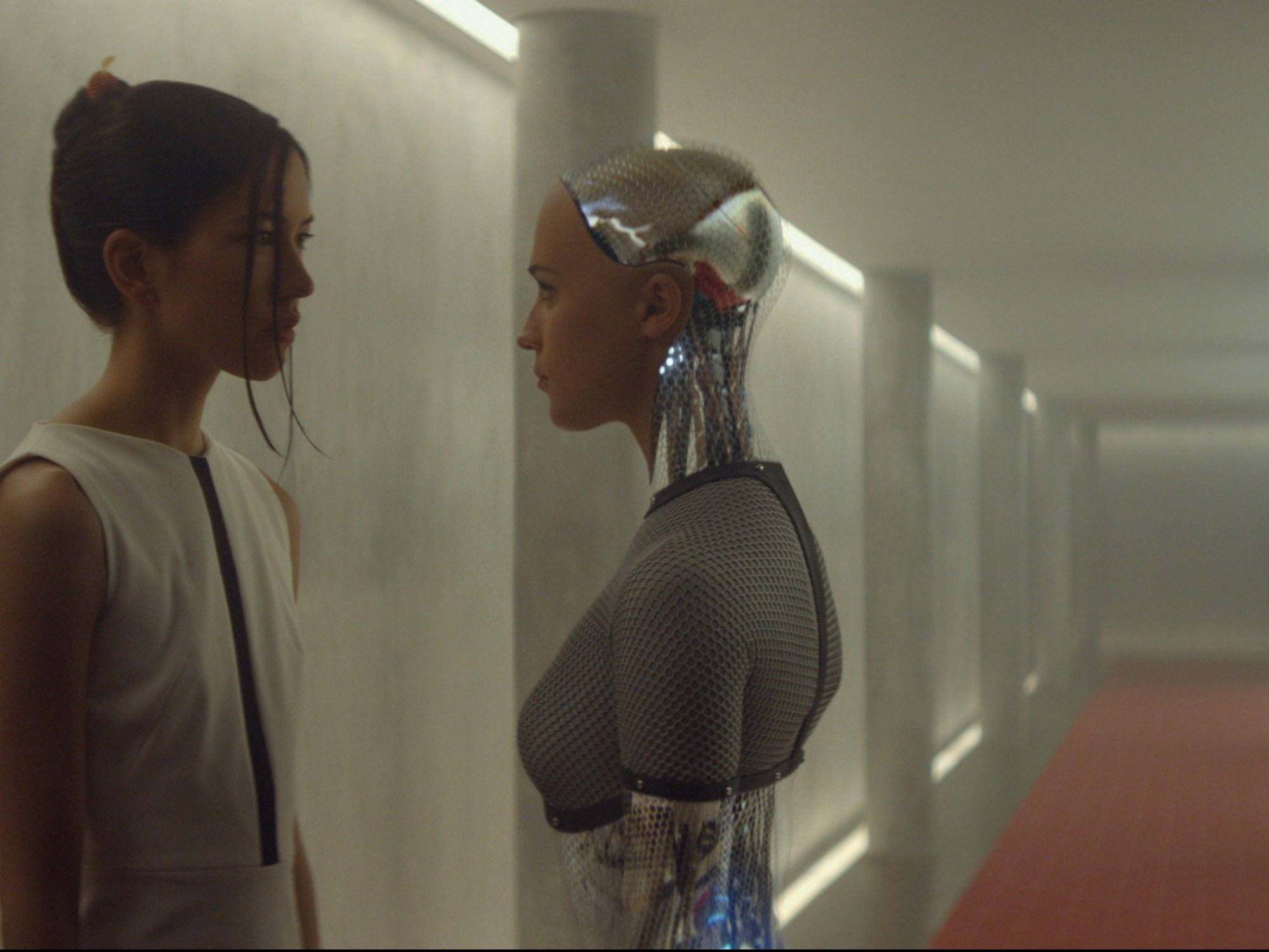 The way the AI is portrayed in both A Space Odyssey and Ex Machina is that they are deceiving they act like they were programmed, they listen, do as told, and show no signs of hostility until something changes in the plot when the AI becomes aware that they are going to be destroyed or replaced.